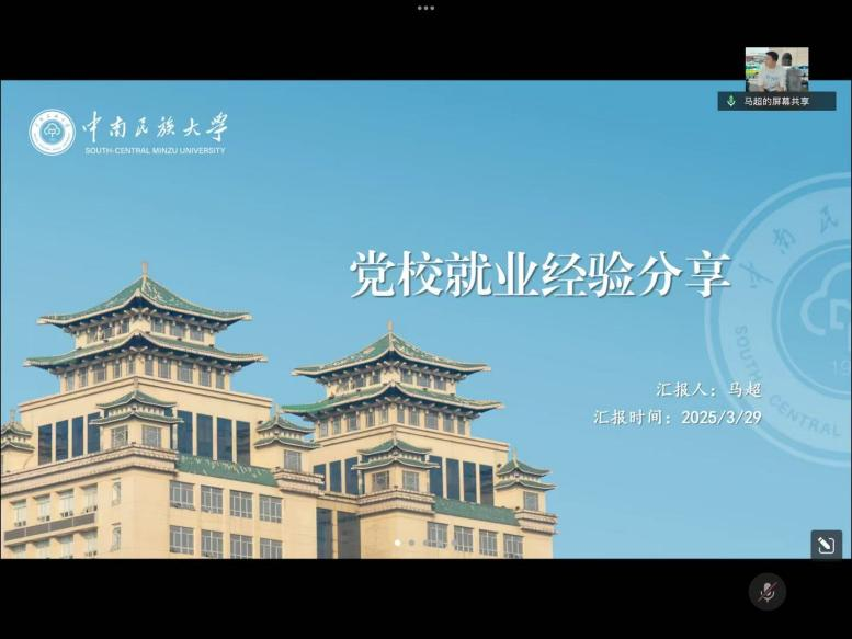 為幫助研究生同學更好地了解就業(yè)現(xiàn)狀、明確職業(yè)規(guī)劃、應(yīng)對就業(yè)挑戰(zhàn)、提升求職技能,3月29日,我院舉辦優(yōu)秀研究生畢業(yè)生線上就業(yè)分享會,邀請我院2024屆優(yōu)秀畢業(yè)生何靖珂、李玥佳、占燚、馬超、方智祺、吳巧詩作求職就業(yè)分享。研究生輔導員李明軒老師及我院全體研究生參加分享會,會議由院研究生會主席團成員熊旭鑫主持。