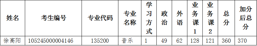 經審核,以下一志愿考生符合“農村義務教育階段學校教師特設崗位計劃”加分條件,初試總分加10分,加分后達到我院2025年碩士研究生音樂專業一志愿復試最低分數線,現納入復試名單并予以公示: