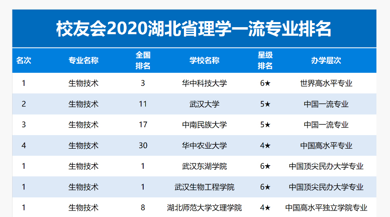 近日,第三方大學評價咨詢機構艾瑞深校友會網(Cuaa.Net)發布校友會2020中國一流專業排名,我校生物技術專業全國排名第17,湖北省排名第3。