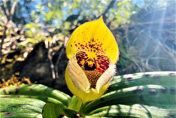 毛瓣杓蘭為蘭科杓蘭屬植物,可以稱得上是植物中的大熊貓。1894年,毛瓣杓蘭被法國植物學家弗蘭歇命名為Cypripedium fargesii Franch.,模式標本產地為四川城口,是我國特有物種,也是國家二級保護植物。毛瓣杓蘭花葉形態奇特,觀賞價值極高,目前自然居群被破壞嚴重,野外已難覓蹤跡,其生存現狀被《中國物種紅色名錄》評定為“易危”,被世界自然保護聯盟(IUCN)瀕危物種紅色名錄評估為“瀕危”(EN)。