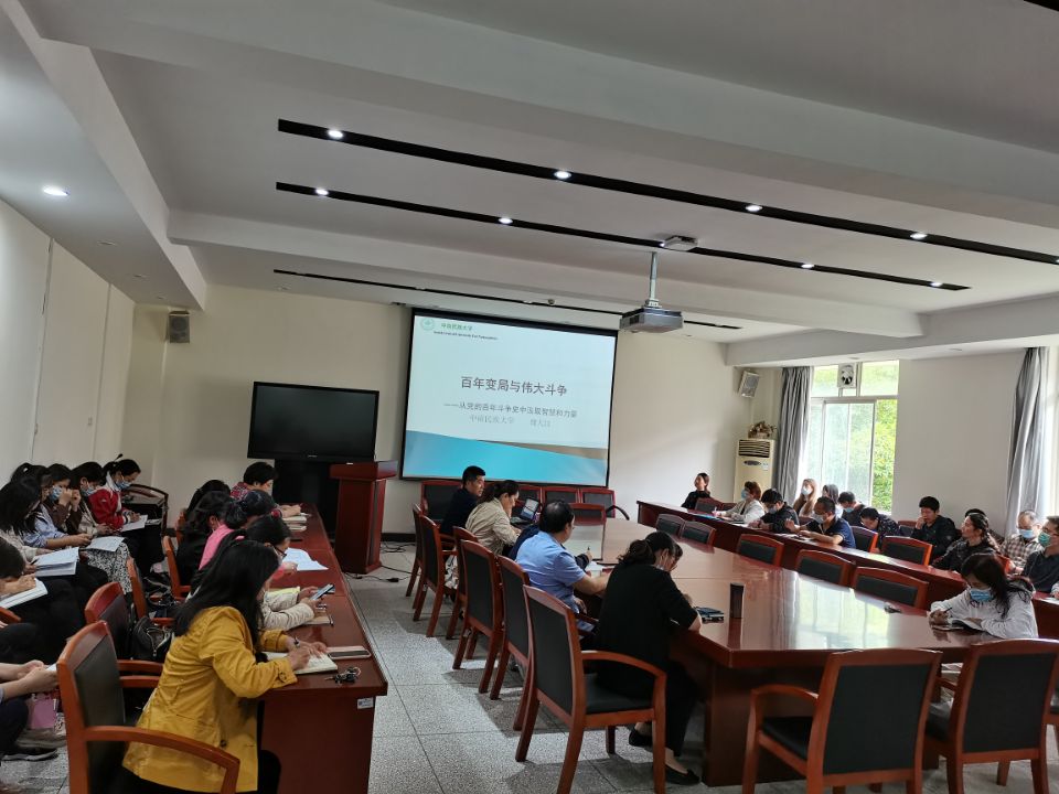 為深入貫徹落實學校黨史學習教育實施方案的總體安排,持續用黨的偉大歷程、百年奮斗史鼓舞師生,5月20日下午,學院邀請學校黨史學習教育教師理論宣講團成員,馬克思主義學院黨委書記魏大江做了題為《百年變局與偉大斗爭》的專題宣講,學院全體教職工和學生黨員代表參加了學習,會議由學院黨委書記謝嵐主持。
