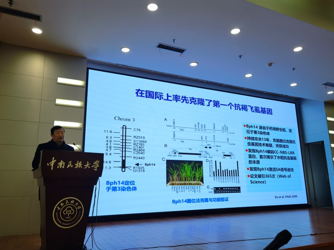 湖北省遺傳學會理事長熊立仲教授致辭。他表示當前國家十分重視青年人才的培養,青年學者承擔著科技振興的重擔,本次論壇為青年學者交流學習提供了好機會。