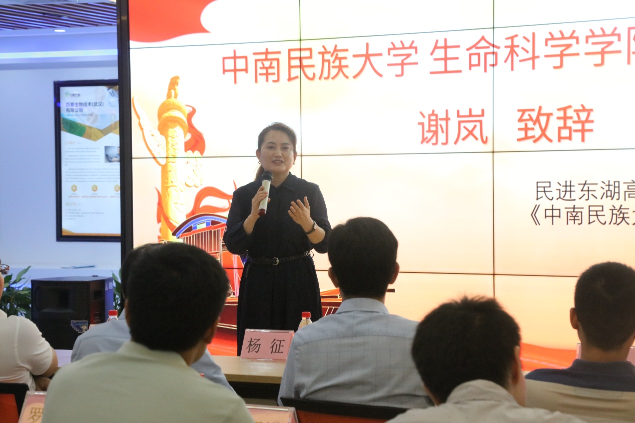 生科學院黨委書記謝嵐代表學院對民進東湖高新科技支部組織和安排這次宣講和交流活動表示感謝。她說,作為國內領先的生物科技產業園區,環境優美的光谷生物城一直是我院畢業生向往的工作地點。本次活動,有效促進學生更好地將所學的理論知識、實驗技能同實際生產實踐聯系起來,給同學們指明了個人成長和國家發展、社會需求相結合的方向。希望生科學院同光谷生物城在人才培養、產學研轉化等方面開展更多更深入的交流與合作。