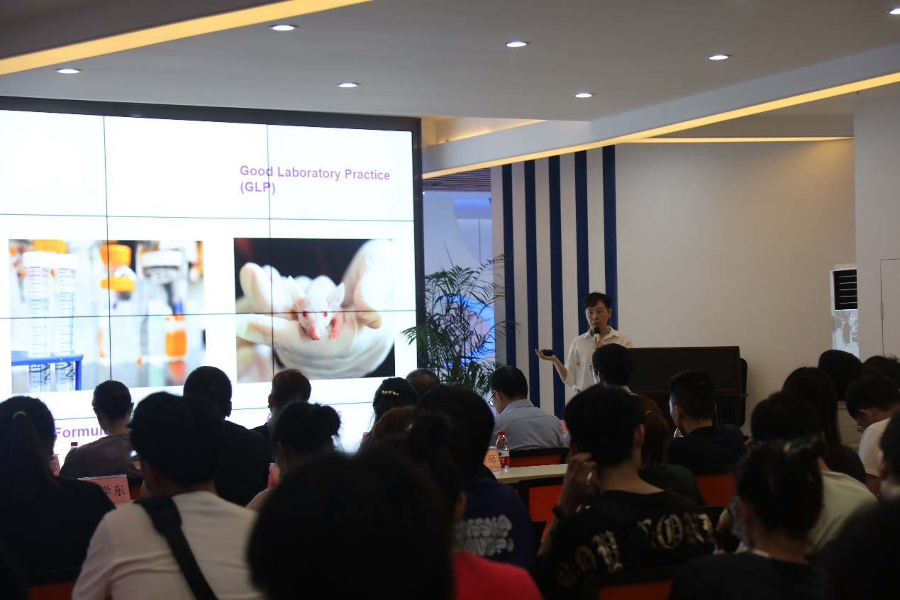 光谷生物城科技企業負責人代表朱馨蕾博士介紹了武漢光谷生物城乃至全國的生物醫藥產業現狀,以及行業未來的發展趨勢。她表示,同學們有幸趕上了生物技術大發展的時代洪流,生物科技行業的發展必將在很大程度上提升同學們對于專業發展和個人成長的信心。在交流環節,她從企業負責人的角度,向在座同學們闡述了對于生物行業從業者的職業定位和個人成長方面的理解和看法,鼓勵同學們扎扎實實學好真本事,在職業發展中展示自身所長。