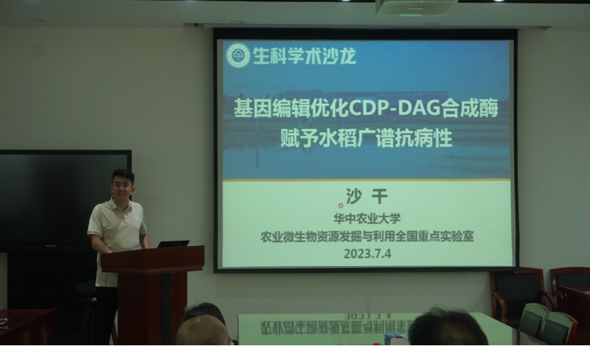 為加強學術交流,營造良好的學術氛圍,7月4日,生命科學學院在學院206會議室舉辦了首屆研究生學術沙龍活動。活動邀請到我院優秀畢業生、華中農業大學沙干博士做題目為“基因編輯優化CDP-DAG合成酶賦予水稻廣譜抗病性”的學術報告。學院黨委書記謝嵐、院長余光輝、部分老師及50余名本碩博士生參加了本次活動,會議由副院長覃永華主持。