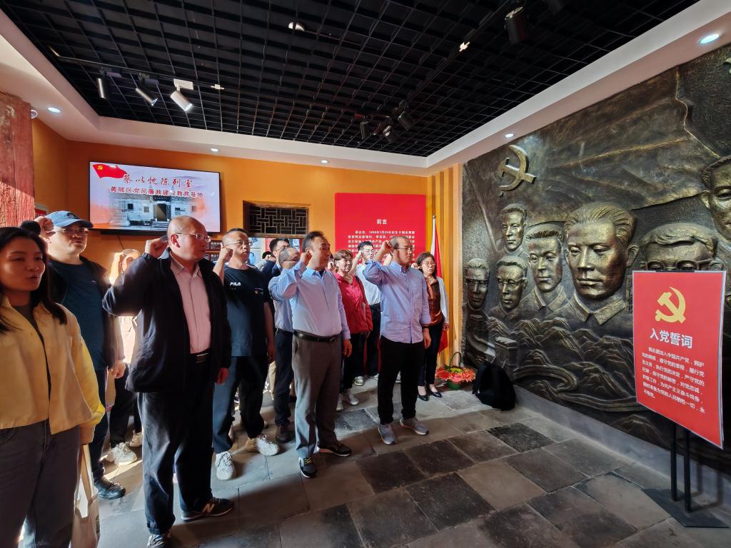 師生黨員在蔡以忱陳列館內(nèi)宣誓。