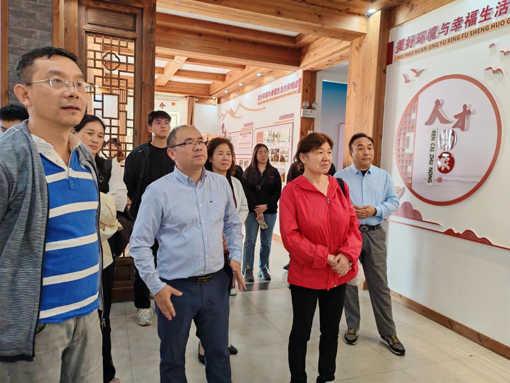 師生黨員參觀鳳凰寨村村委會(huì)一樓展廳。