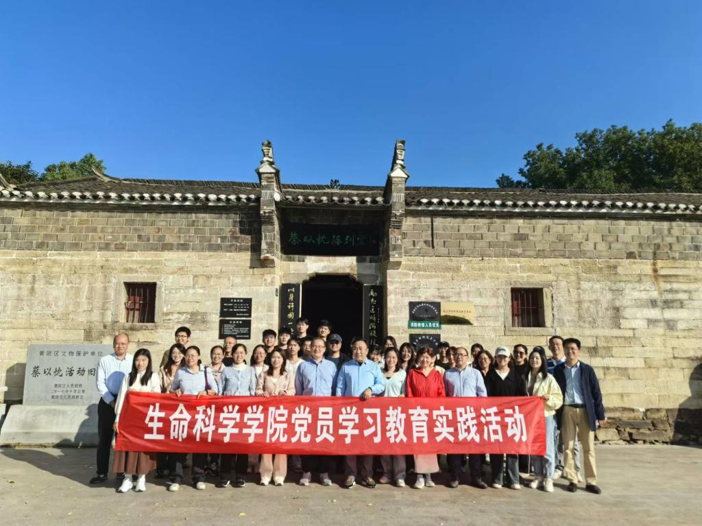 師生黨員在蔡以忱陳列館前合影。