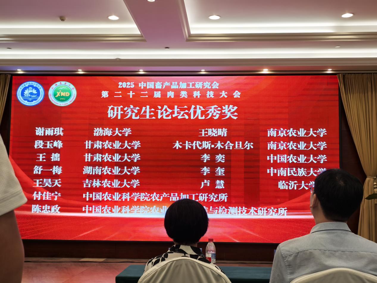 研究生李奎獲第二十二屆肉類科技大會“研究生論壇優秀獎”