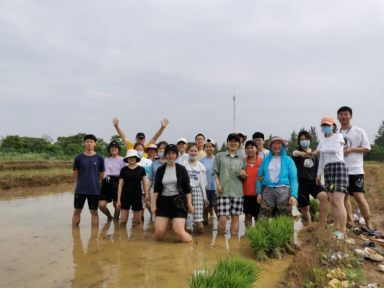 師生在田間合影