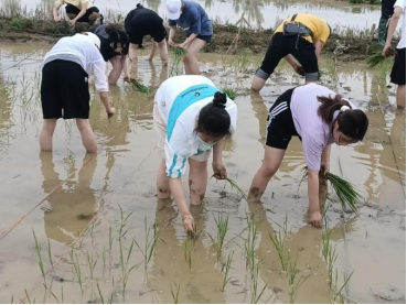 活動(dòng)前,王春臺(tái)向?qū)W生講解了農(nóng)田插秧的基本要點(diǎn)、技術(shù)要領(lǐng),并對(duì)下田的注意事項(xiàng)作了提醒。在老師和實(shí)踐基地工作人員為的示范帶領(lǐng)下,學(xué)生紛紛挽起褲腿,深入田間開(kāi)始插秧。盡管泥巴弄臟了衣服,汗水順著臉頰不斷流下,但所有學(xué)生仍然十分默契地低著頭、彎著腰,按照老師的指導(dǎo)一株一株地將手上的秧苗插進(jìn)水田。看著整齊的秧苗在田地里樹(shù)立起來(lái),學(xué)生的喜悅之情溢于言表。“誰(shuí)知盤中餐,粒粒皆辛苦”。學(xué)生在親近大自然的歡樂(lè)中學(xué)習(xí)農(nóng)耕文化,體會(huì)到了勞動(dòng)的辛苦與喜悅,也加深了對(duì)所學(xué)知識(shí)的理解。