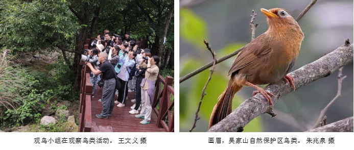 本次野外實習還增加了新的教學內容:觀鳥。清晨6點前、傍晚6點左右,觀鳥小組準時出現在林間小路上,利用專業的觀鳥設備,拍攝影像,鑒定種屬,初步了解了天堂寨和吳家山自然保護區鳥類分布的情況,親身體會了人類活動對鳥類生存的巨大影響。通過此次觀鳥活動,生科院師生把保護野生資源、人與自然和諧共處的思政元素以潤物細無聲的方式融入到了本次野外實習實踐教學各環節。