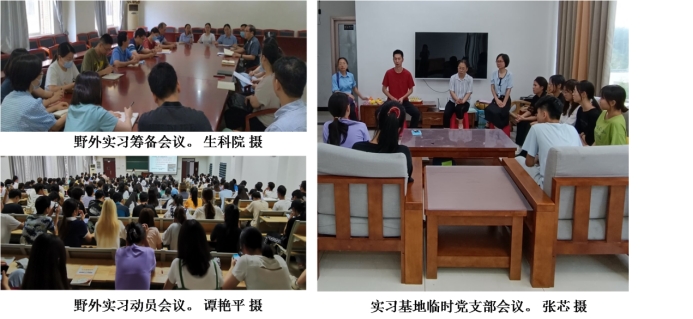 受新冠疫情的影響,本次野外實習存在2019和2020級學生實習時間撞車、帶隊老師需求量大和防疫工作難度大等難題。為了順利解決這些困難,學院黨委和行政領導班子利用實習籌備會、師生實習動員會和設立實習基地臨時黨支部等一系列措施,為野外實習的順利進行理清思路、排除困難。在實習過程中,臨時黨支部充分激發了學生黨員和入黨積極分子的積極性,發揮出很好的先鋒模范帶頭作用和良好的團隊合作精神。