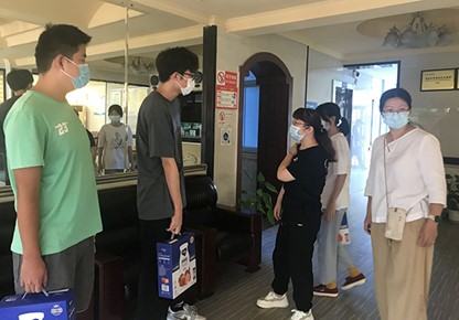近期,部分學生因有中高風險區旅居史等情況而集中進行醫學觀察,班導師們及時掌握隔離學生的相關情況,定期與學生聯系,關心關愛學生學習生活。十一節前,學院黨委書記謝嵐帶隊,組織相關班導師看望慰問了這部分學生。老師們給同學們送去了慰問物資,與大家深入交流,疏導學生心理壓力