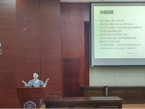 講座伊始,郭曉麗老師以不同的四張圖片引起同學(xué)們的討論,闡述了愛(ài)情的原理,分析了同學(xué)們?cè)趹賽?ài)過(guò)程中可能遇到的心理困惑。隨后,她結(jié)合實(shí)例,對(duì)愛(ài)情理論、維系愛(ài)情、結(jié)束愛(ài)情、性與幸福和心理健康六個(gè)方面進(jìn)行了具體的分析,深入淺出地講解了戀愛(ài)中的不同要點(diǎn),包括如何與對(duì)方溝通、表達(dá)自己的情感、處理沖突、樹(shù)立正常的愛(ài)情觀等。學(xué)子們紛紛表示受益匪淺,對(duì)戀愛(ài)有了更深刻的認(rèn)識(shí)。