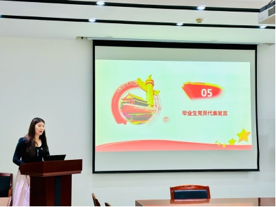 會上畢業(yè)生黨員代表金文語同學上臺發(fā)言,她提到,作為一名共產黨員,要牢記黨的初心和使命,時刻保持共產黨員的先進性和純潔性,未來的工作中,應以實際行動踐行黨的宗旨,為社會發(fā)展貢獻自己的力量。