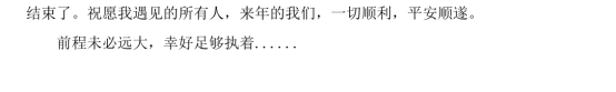 當黑云翻墨,天邊的朝陽未能如期地升起時,我知道,冬天如期地到來了。我走入寒風中,開啟同樣忙碌而又充實的一天,再次走入暮色中時,2024年的本科生涯結束了。祝愿我遇見的所有人,來年的我們,一切順利,平安順遂。