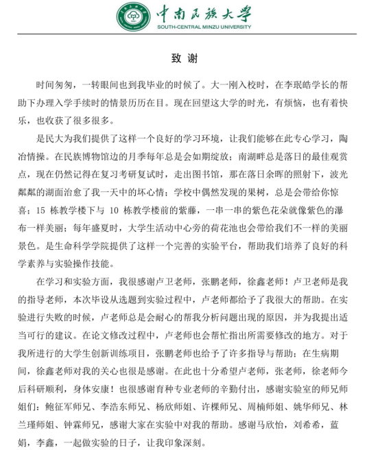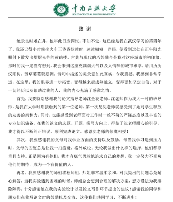 在民大的這四年時光里,我獲得了很多,不僅僅是理論知識,還有實驗技能,甚至是生活技能都得到了提升,同時我也遇見了真摯的友情,收獲了師生情。