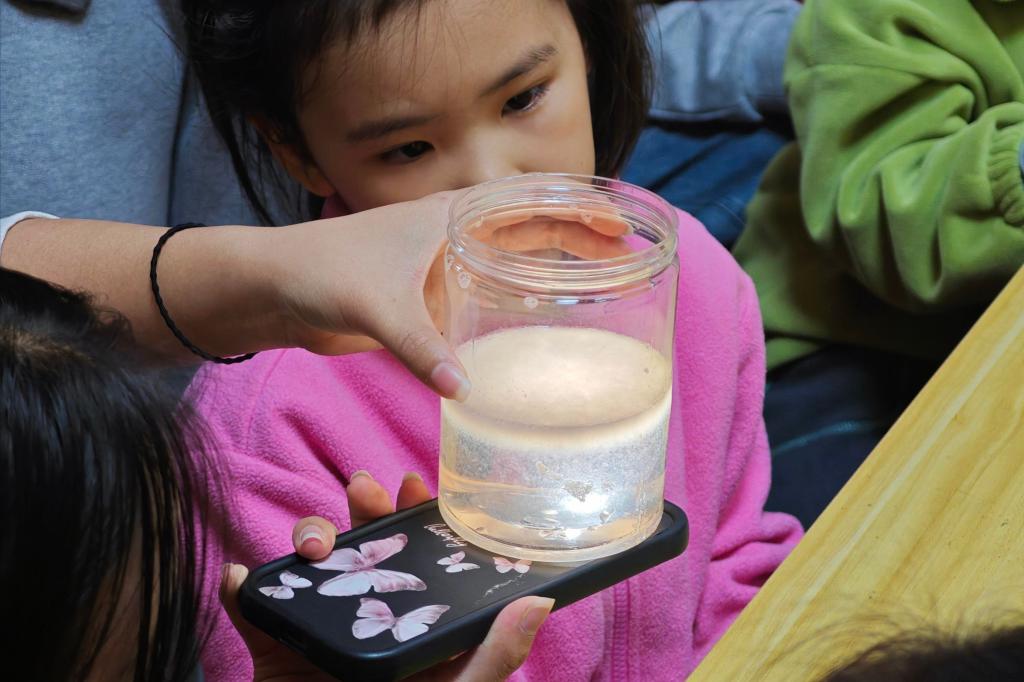 活動(dòng)中,看著孩子們好奇地圍在實(shí)驗(yàn)臺(tái)旁,眼睛里閃爍著求知的光芒,我瞬間充滿動(dòng)力。從指導(dǎo)他們給香蕉加洗潔精破壞細(xì)胞膜,到觀察酒精層浮現(xiàn)出白色絮狀的DNA,每一步都伴隨著孩子們的驚呼與提問。當(dāng)有孩子舉著試管興奮地說“我看到DNA啦”時(shí),我深深體會(huì)到科普的意義。