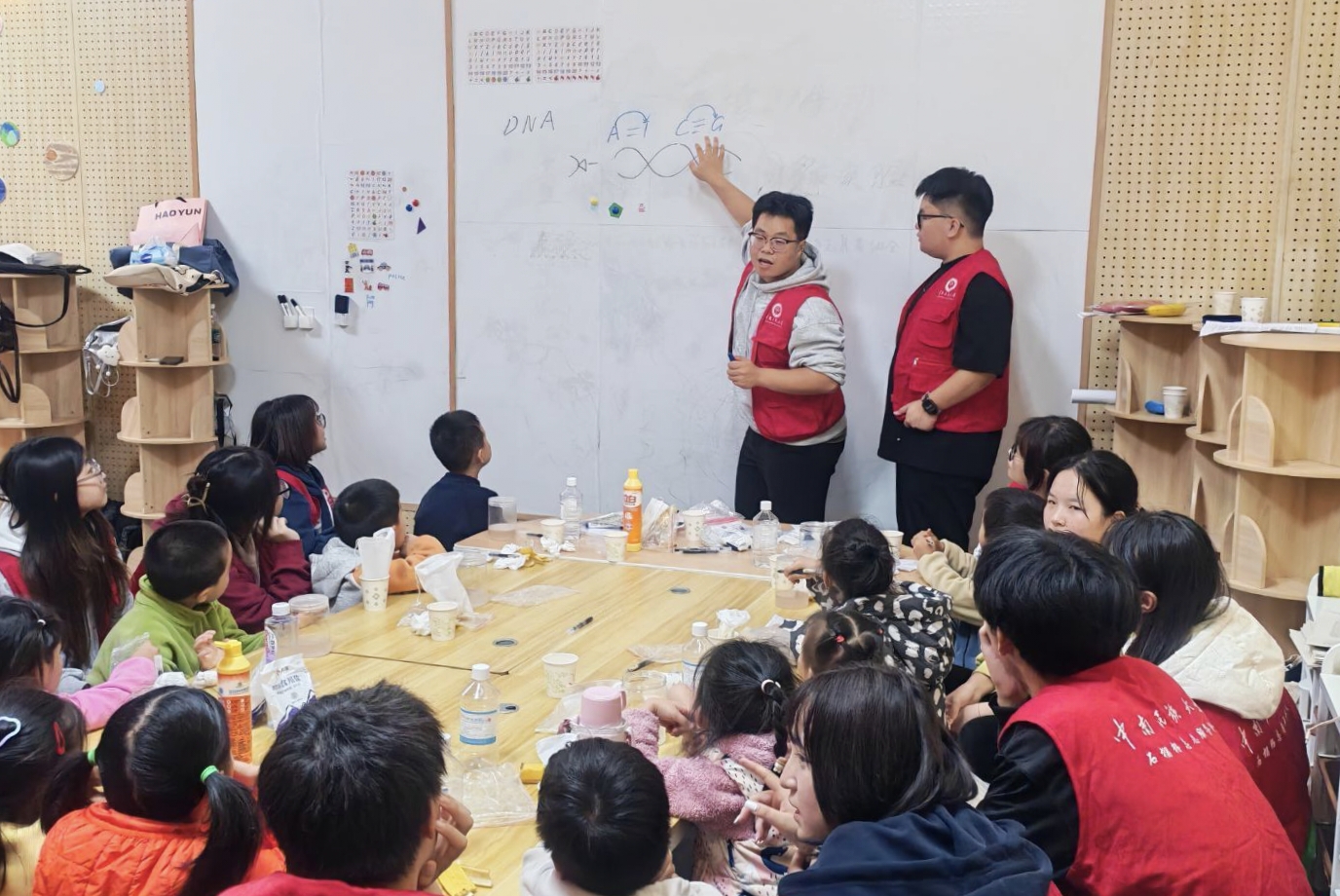 “原來DNA藏在香蕉里?”“這些拼圖卡片連起來就像我們走過的臺(tái)階!”10月26日傍晚,生命科學(xué)學(xué)院的志愿者們?cè)谥心厦褡宕髮W(xué)繪本館內(nèi)為小朋友們科普了DNA,讓小朋友們了解到生命的奧秘,一場(chǎng)專為小朋友設(shè)計(jì)的“DNA探秘之旅”在此開啟,沒有枯燥的課本,只有能親手操作的實(shí)驗(yàn)、能拼搭的模型,讓抽象的生命密碼變得觸手可及。