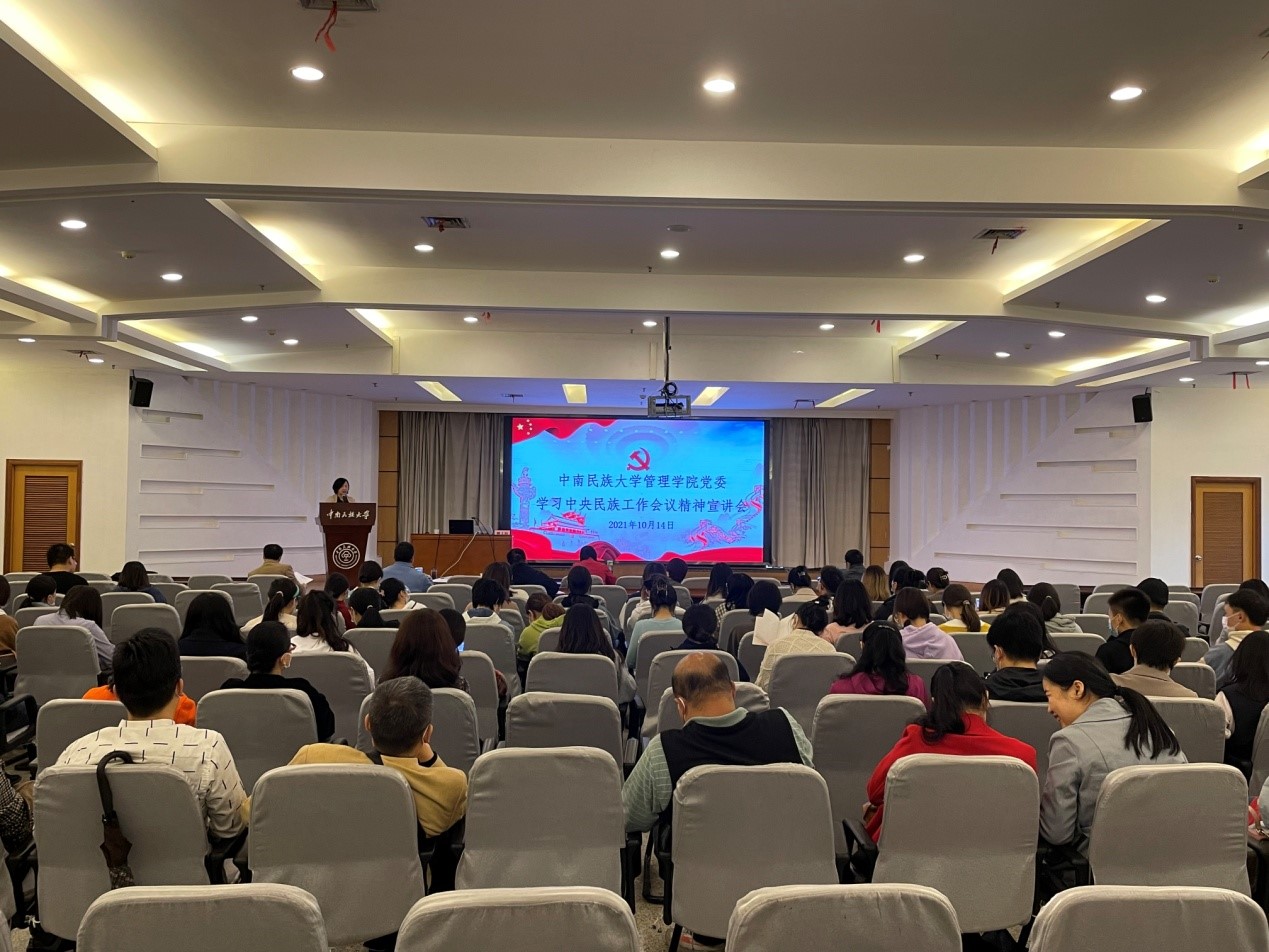 10月14日下午,管理學院在潤良報告廳召開學習中央民族工作會議精神專題學習會,中華民族共同體研究院院長姚上海應邀作專題學習報告。管理學院全體教職工和學生預備黨員參加學習。報告會由學院黨委書記鄒反修主持。