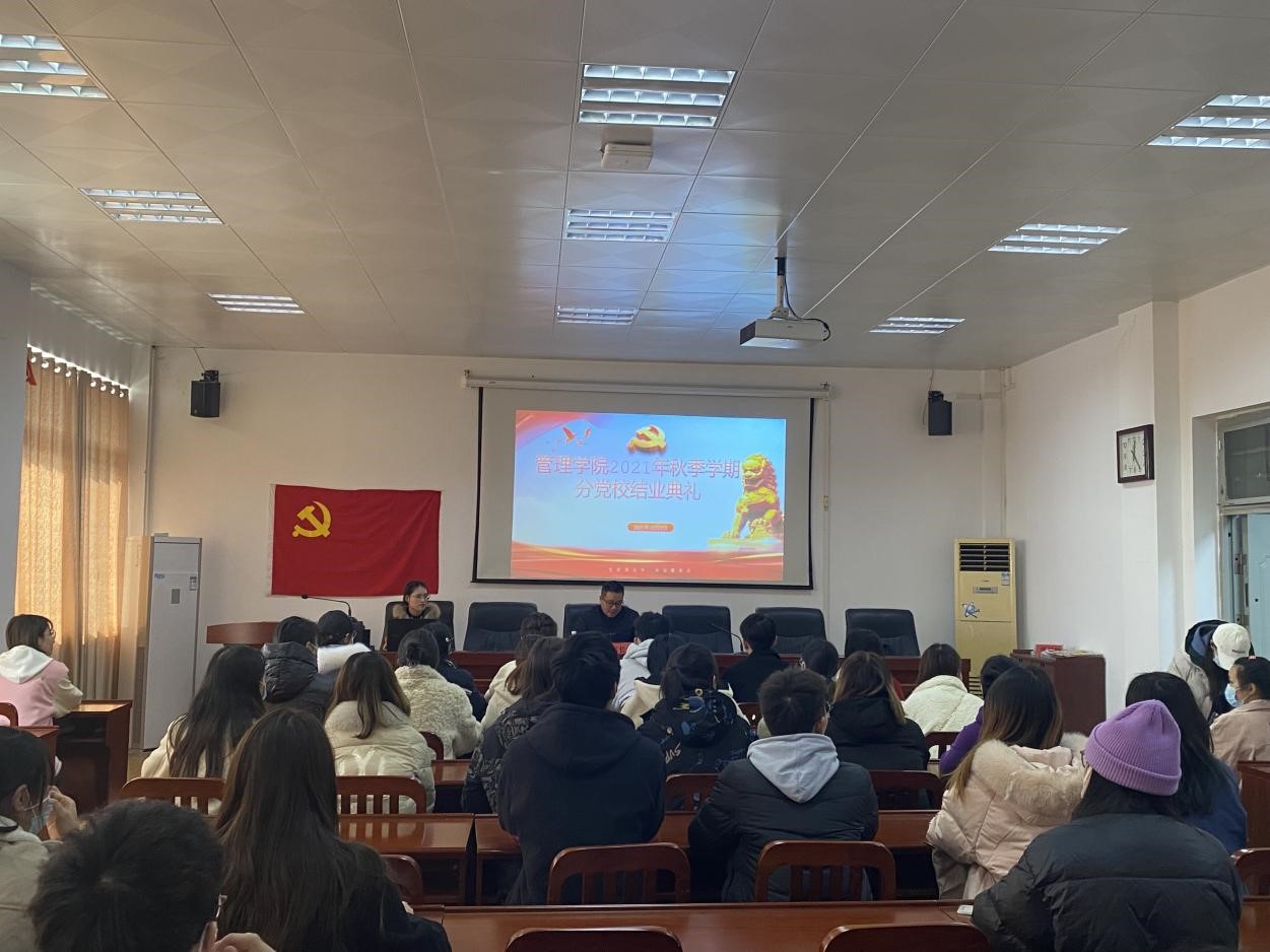 2021年12月2日中午,管理學院在5棟506舉行2021年秋季學期分黨校結業典禮,管理學院黨委副書記雷長生、分黨校班主任羅蘭、學院秋季學期分黨校學員代表參加,典禮由雷長生主持。