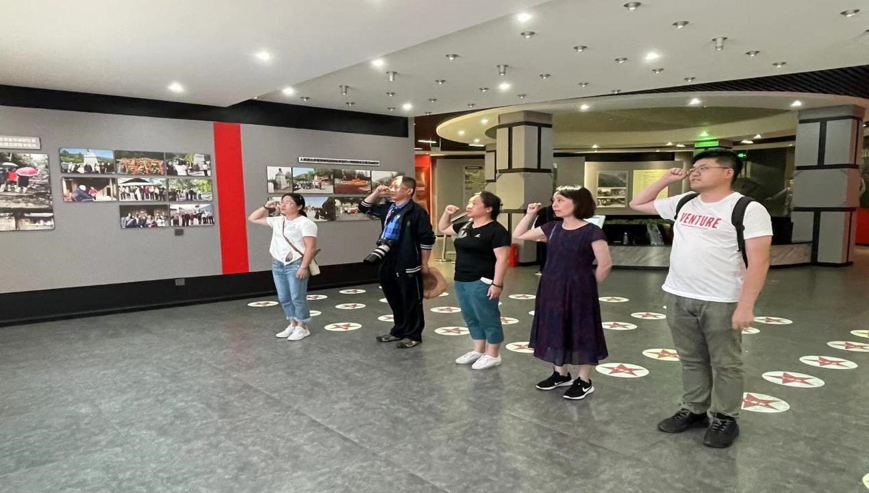 “我志愿加入中國共產黨,擁護黨的綱領,遵守黨的章程……”參觀結束前,五位黨員老師共同高舉右拳,面對鮮紅的黨旗,莊嚴宣誓,重溫入黨誓詞。五位老師鏗鏘有力的誓言展現出老師們堅定不移的政治信念,也進一步增強了老師們不忘初心、牢記使命的教書育人責任感和使命感。