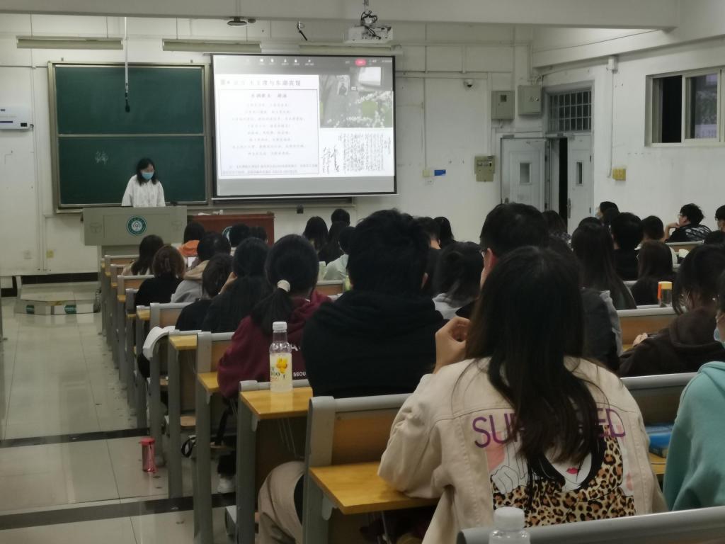 李東娟老師以東湖賓館為例講酒店的紅色故事,《水調歌頭.游泳》是毛主席在東湖賓館住宿期間寫的,課堂上安排學生集體誦讀毛澤東詩詞。