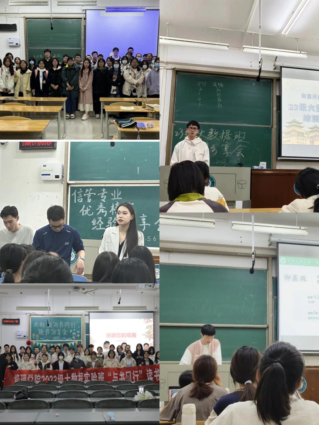 在學風建設方面,為了營造良好的學習氛圍,調動組織成員學習的積極性,23級大數據實驗班組織了一系列活動:積極召開期中、期末考試動員會,讓每一個同學明晰自己的學習目標,鞭策同學們完成好每一門課的學習進度;組織學習經驗分享會、保研分享會、綜測分享會等,學長學姐們的經驗分享讓同學們更好地打破大學的信息差,解除進入大學時的種種疑惑與迷茫;組織寒假自主學習打卡活動,班上同學全員參與,在濃郁的學習氛圍中,互幫互助、共同進步;開展了“與書同行”的活動,并在春季初圓滿完成了讀書成果分享大會,為同學們提供了一個展示自己閱讀成果和交流心得的平臺,為班級營造了良好的閱讀氛圍,增強了班級凝聚力。在大家的共同努力下,班級學風建設成效顯著,2023至2024學年第一學期,23大數據實驗班最高績點在4.3以上,班級中16位同學績點排名沖進管科大類排名前20。