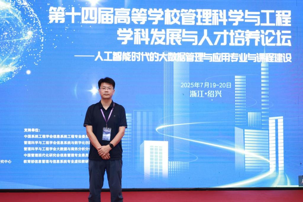(文字:汪瀟)2025年7月18——20日,“第十四屆高等學校管理科學與工程學科發展與人才培養論壇——人工智能時代的大數據管理與應用專業與課程建設”在浙江省紹興市召開。本次論壇由清華大學出版社有限公司主辦,北京大學信息管理系、北京大學信息化與信息管理研究中心協辦,聚焦人工智能時代寫大數據管理與應用專業及課程建設的前沿問題,吸引了各高校相關專業教師參與。我院管理科學與工程系教師楊單受邀參會,與全國多所高校相關專業教師共探人工智能時代下大數據管理與應用領域的學科發展與人才培養新路徑。