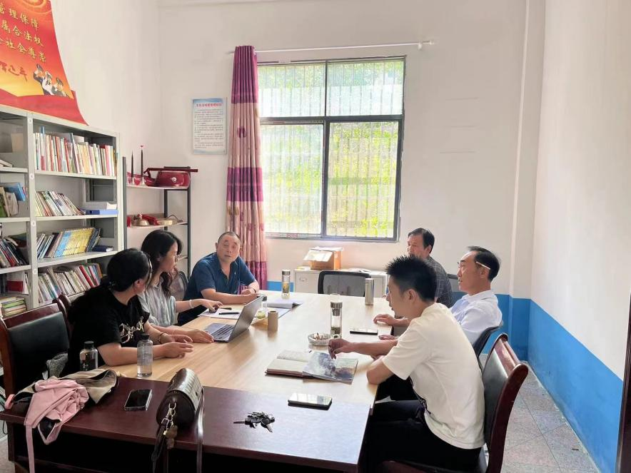 (圖為課題組盧世菊教授與李海娥教授與瓦屋場村村委會人員研討會場景)