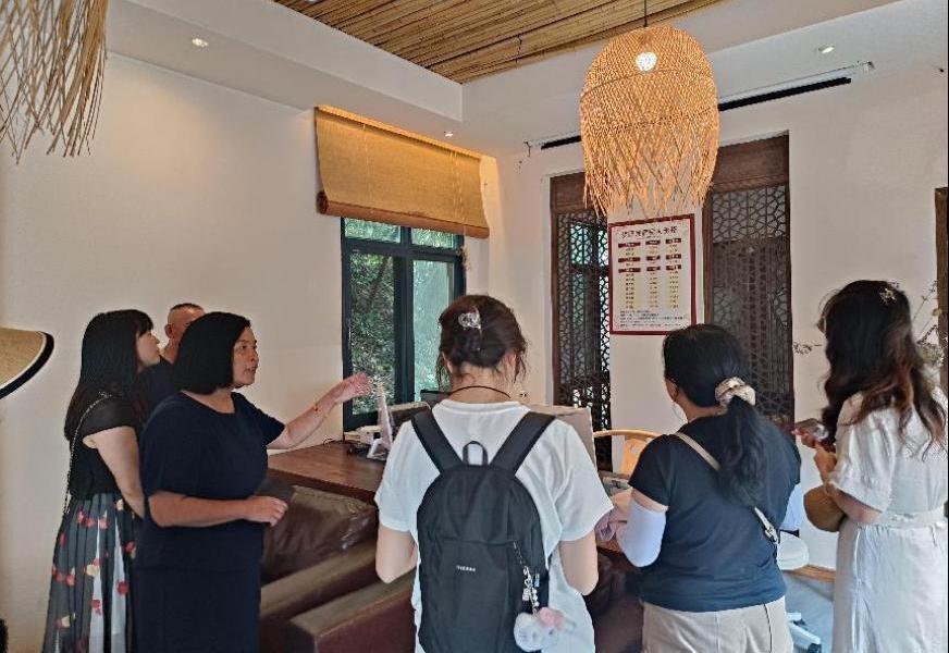 課題組首站來到了鐵廠荒社區(qū)道子坪田園項目綜合體,在鎮(zhèn)政府相關(guān)人員的帶領(lǐng)下,參觀了解項目整體規(guī)劃及建設(shè)情況,隨后實地走訪并深入調(diào)研該地數(shù)家民宿,就民宿發(fā)展現(xiàn)狀及農(nóng)戶發(fā)展展望等相關(guān)問題展開交流,對“鐵廠荒模式”有了較為全面的理解,作出了總結(jié)與思考。