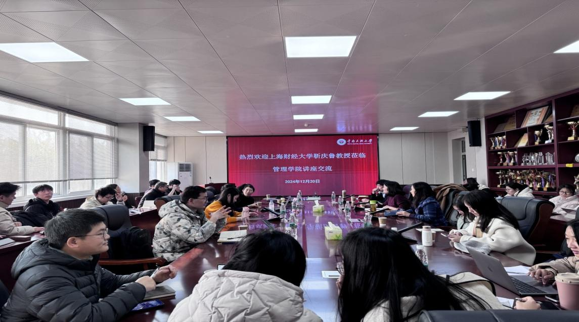 2024年12月20日下午,現任上海財經大學會計學院院長,教授、博士生導師,兼任第九屆國家自然科學基金委管理科學部專家咨詢委員會委員,全國MPAcc教育指導委員會委員,中國會計學會會計教育分會會長,教育部首批全國高校黃大年式教學團隊負責人,教育部首批哲學社會科學實驗室(培育)負責人,國家杰出青年科學基金獲得者,教育部長江學者特聘教授,國家萬人計劃哲學社會科學領軍人才;入選國家百千萬人才工程、財政部會計名家培養工程、中宣部文化名家暨四個一批人才工程,享受國務院政府特殊津貼、并被授予“有突出貢獻中青年專家”靳慶魯教授受管院之邀作《會計信息與公司估值》專題講座,講座在5號樓206會議室舉行,武漢大學經濟管理學院李青原教授、武漢理工大學管理學院洪葒教授、東北大學工商管理學院賈建鋒教授以及我院部分老師和會計、企業管理研究生參加會議,管理學院院長翟華云教授主持講座。