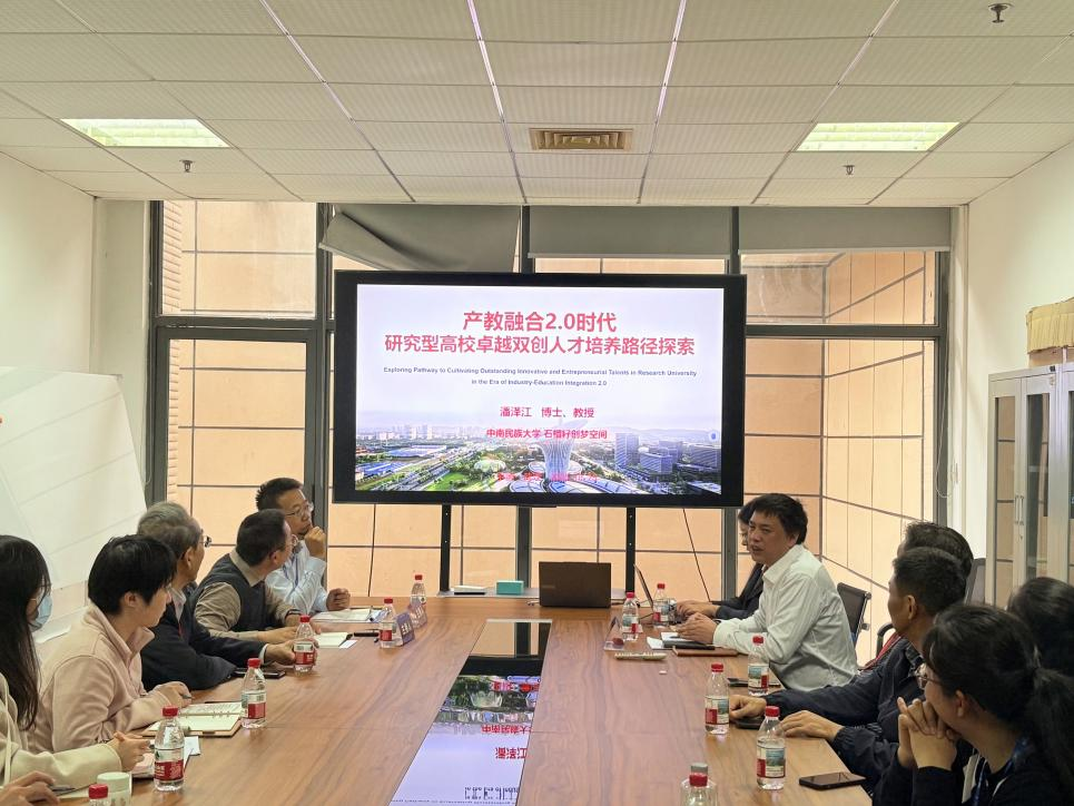 大會的特邀報告環節,潘澤江教授作了題為《產教融合2.0時代研究型高校卓越雙創人才培養路徑探索》的精彩報告。報告中,他系統闡述了他在創新創業領域取得的一系列創新性研究成果,并對該領域的未來發展方向提出了獨到而深刻的見解。報告內容翔實、邏輯嚴謹,引發了在場學者的濃厚興趣與熱烈討論。報告結束后,潘教授還與多位與會專家進行了深入的交流,現場學術氛圍濃厚。