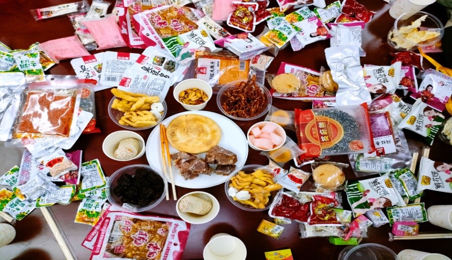 (圖為同學(xué)們的特產(chǎn)美食試吃)