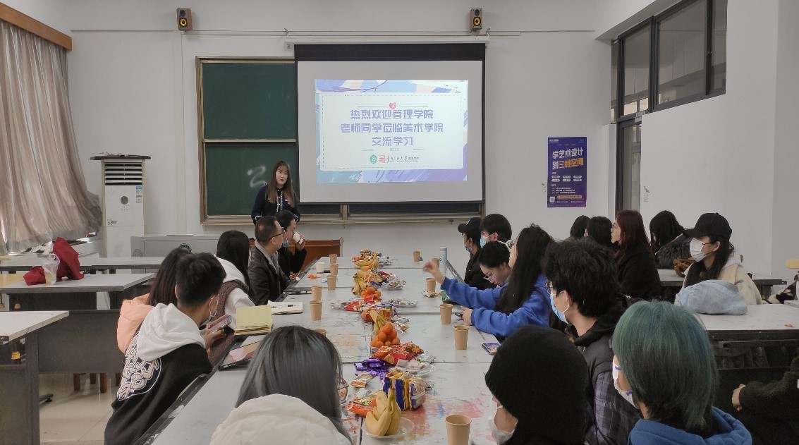 會后,美術(shù)學(xué)院與管理學(xué)院學(xué)生干部一同參觀了美術(shù)學(xué)院專業(yè)課教室。此次座談會兩院交流內(nèi)容豐富,全體參會老師、同學(xué)均表示收獲頗豐。