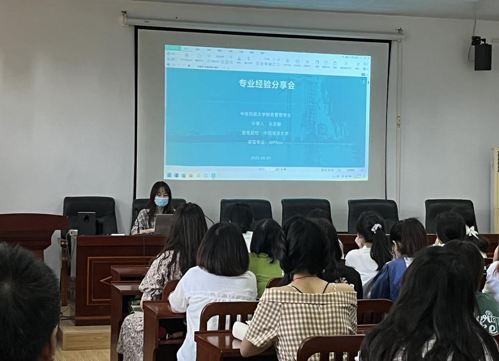 會議伊始,蘇亞民老師對財務管理系往年考研錄取情況以及今后考研發展趨勢進行了詳細的介紹,指出考研形勢日益嚴峻,鼓勵大家要認真聆聽經驗,積極復習備考。隨后,保研到中國海洋大學的張慧敏同學對自己的保研經歷進行了詳細的介紹,建議大家在保持高績點的同時積極參加學科競賽并嘗試加入導師課題組進行科研學習,在夏令營時期要海投簡歷為自己爭取更多的機會。考上湖南大學研究生的王樂霏同學介紹了會計專碩的學習內容,重點介紹了報考少數民族骨干計劃的條件。考上云南財經大學研究生的楊展鈳同學介紹了經濟類聯考的考試內容以及在調劑過程中遇到的困難,他認為調劑工作不到最后一刻千萬不能放棄,同時感謝專業老師對自己調劑的引導和幫助。考上本校研究生的張麗婷、余長軒2位同學介紹了會計學碩備考過程中各科的學習方法,同時張麗婷強調了盡早開始考研學習的必要性以及保持良好心態的重要性,而余長軒同學認為考研是一個持久戰,只要堅持下去就能取得滿意的成績。考上本校研究生的李倩同學重點向大家介紹了自己的備考經歷以及考研過程中出現的問題,強調在考研過程中切忌精神內耗,不要半途而廢。張梅學姐向大家分享了自己公務員考試過程中的時間安排以及使用過的一些學習資料,強調在行測考試中要有的放失,行測考試時間少而題量大,要爭取在有限的考試時間中獲得理想的分數。徐嘉怡同學重點介紹了自己的面試經歷和面試技巧,她強調簡歷填寫一定要認真,不要出錯,要培養面試的隨機應變能力。
