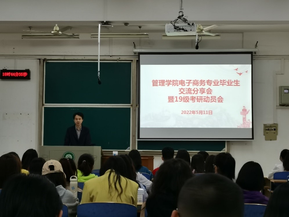 為激發2019級學生的考研熱情,明確考研的目標與方向,調動擬就業學生的積極性,同時幫助同學們制定高效、合理的備考計劃以及就業準備。電子商務專業于5月11日下午18:40在15號教學樓611教室召開了保研、考研和就業經驗分享會及19級考研動員會。會議由電子商務系主任別黎老師主持,電子商務1902班班導師祝婷老師、電子商務專業2018級5位優秀畢業生代表、2019級、2020級等90余名同學參與了此次會議。