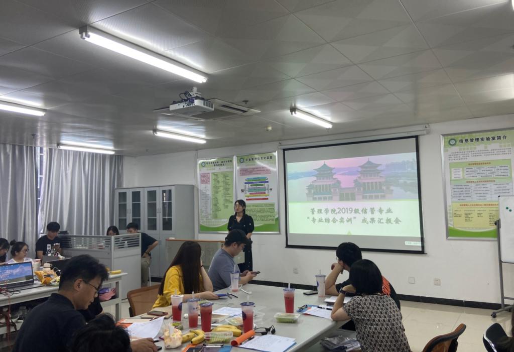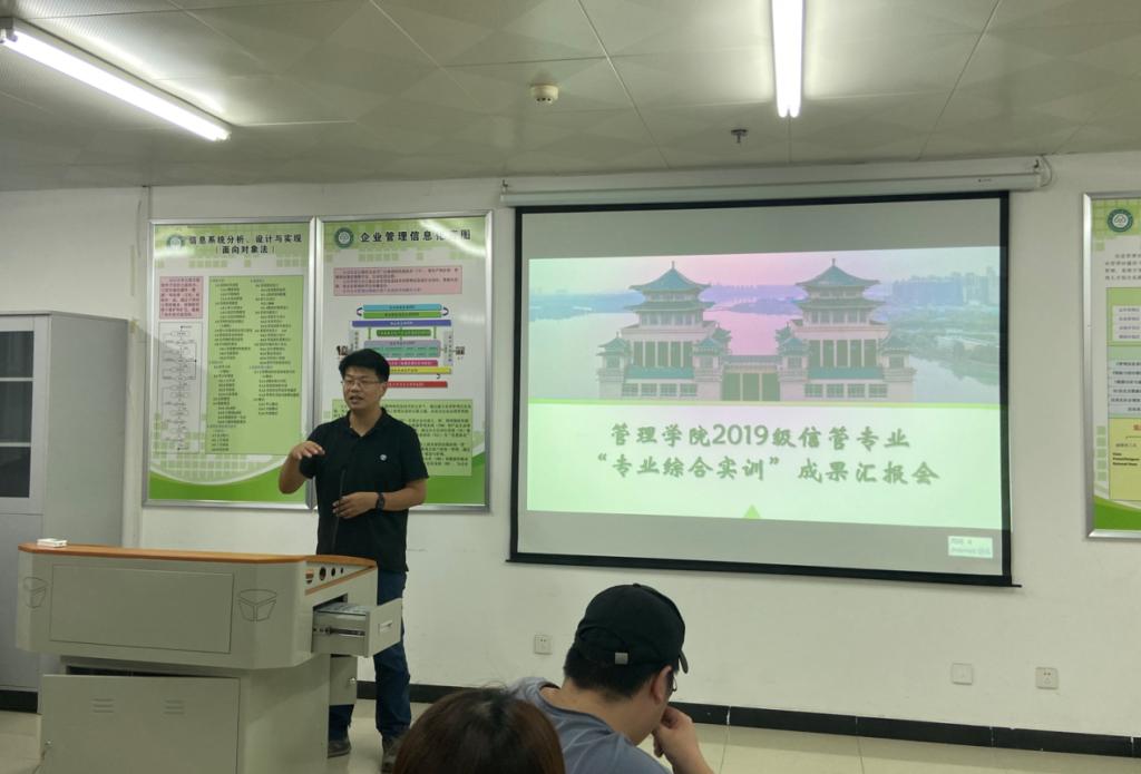 2022年6月10日下午2點(diǎn),管理學(xué)院2019級(jí)信息管理與信息系統(tǒng)專業(yè)“專業(yè)綜合實(shí)訓(xùn)”匯報(bào)會(huì)在16棟103實(shí)驗(yàn)室順利召開。本次匯報(bào)會(huì)主題為2019級(jí)信管專業(yè)綜合實(shí)訓(xùn)的項(xiàng)目發(fā)布、評(píng)優(yōu)暨結(jié)業(yè)典禮。匯報(bào)會(huì)由劉兆龍、王莎莎擔(dān)任主持人,全體2019級(jí)信管專業(yè)學(xué)生參加。參會(huì)的領(lǐng)導(dǎo)和老師有管理學(xué)院楊單老師、王梅源老師、杜文華老師、馬林茂老師,武漢凡諾公司周丹老師、林焰峰老師。