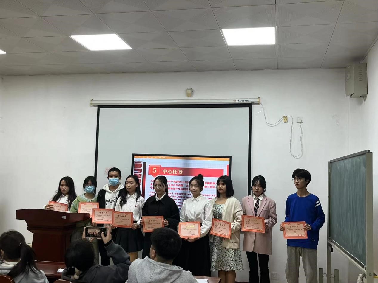 (圖片:郭翱慧)中國共產黨第二十次全國代表大會于10月16日至22日在北京勝利召開。聆聽完習近平總書記所作的報告后,管院學子反響熱烈。為進一步引導廣大青年深入學習宣傳貫徹黨的二十大精神,在輔導員姚亞南老師的組織下,2022級新生利用晚自習時間,開展以“學習黨的二十大”為主題的中、英文演講活動。同學們主動報名積極參加演講比賽,展示自己對黨的二十大的學習成果。