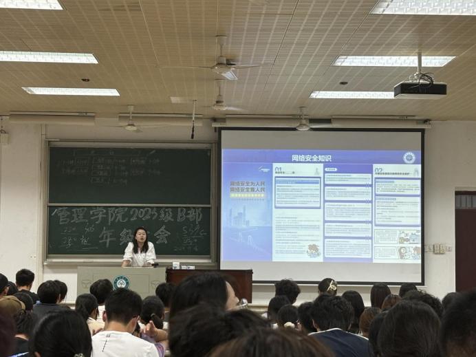 會上,王衛(wèi)以“如何正確解讀輔導員使用說明手冊”這樣幽默風趣的方式開場,調動了現(xiàn)場的氣氛。隨后,她以“同向而行的起點”“長短可塑的線段”“向量標量的抉擇”為題,深入淺出地從日常管理要求、學業(yè)發(fā)展規(guī)劃、注重身心健康、學習網絡安全知識四個方面進行了強調。她表示,新學期伊始,大家一定要盡快“收心”,以積極樂觀、穩(wěn)中求進的狀態(tài)投入學習和生活之中:一是要提高獨立自主能力,遵守學校學院各項規(guī)章制度,準時準點進行“早晚簽”,謹防電詐,請假要符合相關流程和手續(xù);二是要做好學業(yè)規(guī)劃,莫讓學業(yè)預警持續(xù)攀升,明細未來發(fā)展方向后查漏補缺;三是要注重身心健康,掌握情緒調節(jié)的方法,適時疏解情緒;四是要增強網絡安全意識,要正確對待網絡虛擬世界,合法、合理使用互聯(lián)網,切實維護網絡安全。