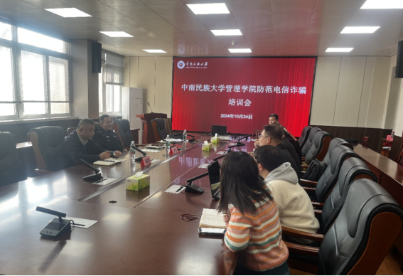 10月24日下午,管理學(xué)院于5號(hào)樓206會(huì)議室召開(kāi)了防范電信詐騙培訓(xùn)會(huì)。鐵箕山派出所羅浩警官、吳高濤警官應(yīng)邀出席培訓(xùn)。學(xué)院黨委副書(shū)記李明亮、全體本科生專(zhuān)職輔導(dǎo)員、研究生兼職輔導(dǎo)員參會(huì)。會(huì)議由學(xué)院黨委書(shū)記聞亮主持。