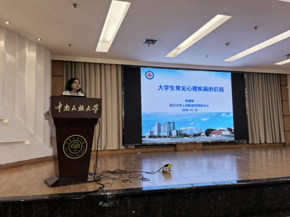 為進一步貫徹落實習近平總書記關于教育的重要論述和全國教育大會精神,落實立德樹人根本任務,秉持“立德樹人·潤心賦能”心理育人理念,著力深化教育教學、實踐活動、咨詢服務、危機干預、平臺保障,促進大學生健康成長,推動學院心理育人工作提質增效。12月10日晚,管理學院邀請武漢大學人民醫院精神衛生中心的李睿婷醫生為學院學生進行了主題為《常見精神疾病的識別與處理》的心理健康講座。管理學院2024級輔導員盧海濤、涂帥林兩位老師以及學院200余名學生干部、寢室長參加了講座。會議由盧海濤老師主持。