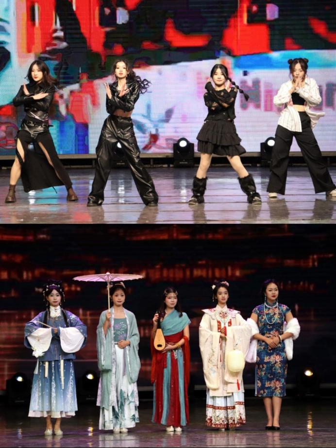 各美其美,美美與共。我院不同民族的學(xué)生共同帶來了許多弘揚中華優(yōu)秀文化的節(jié)目,他們以歌舞為形展中華文化之美,來提升和激發(fā)觀眾的文化自信與民族自豪感,讓鑄牢中華民族共同體意識這一主線深入人心。舞蹈《象山水拜月》以表演者們曼妙婀娜的身姿,將中華傳統(tǒng)文化中的“拜月”娓娓道來。舞蹈《藏風(fēng)踏舞》,帶領(lǐng)觀眾們沉浸式感受到淳樸好客的風(fēng)情。模特隊帶來的走秀《時光穿梭·文物風(fēng)華》溯源歷史,尋脈中華。