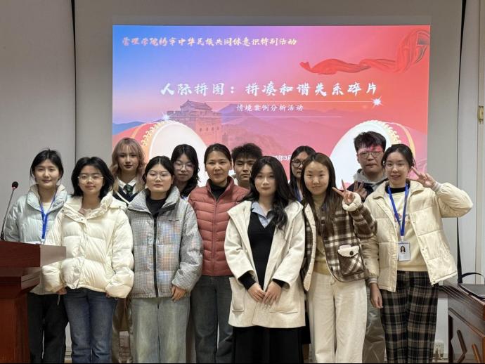 本次比賽是管理學院“鑄牢中華民族共同體意識系列活動”中的一項,這種將心理學理論與管理實踐相結合的賽制設計,不僅深化了師生對人際關系的認知,更為培養(yǎng)具有人文關懷的管理人才提供了實踐平臺。活動還特別注重引導學生將閱讀成果轉化為促進個人成長的正向能量,在校園內形成了以書會友、以智育德的文化氛圍。