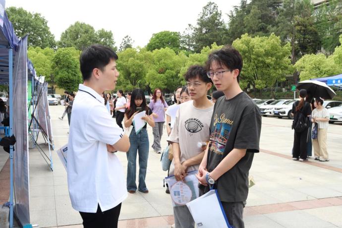 活動現場氣氛熱烈,人頭攢動。數百名學生攜帶簡歷穿梭于各個企業展位之間,積極與企業代表溝通交流,深入了解聘選要求,精準匹配職業意向。管理學院2021級輔導員謝鵬表示,此次招聘會對于搶抓春招黃金期,推動畢業生高質量就業具有重要意義,引起了管院畢業生的積極反響。“非常感謝洪山區黨委、政府及學校和學院!不僅為我們提供招聘企業的信息,還為我們舉辦招聘會,積極為我們創造就業機會,讓我對未來的職業規劃充滿信心。”管理學院2021級信息管理與信息系統專業農昕澄同學剛咨詢完心儀的企業。