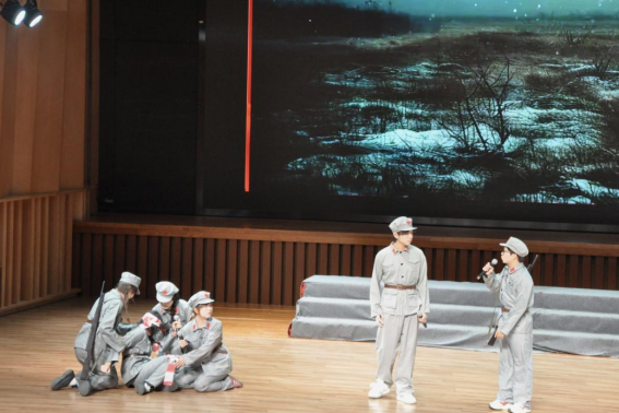 當《征途如炬》的朗誦聲在廳內(nèi)回蕩,一幅波瀾壯闊的歷史畫卷徐徐展開。話劇《長征路上的石榴籽精神——彝海結(jié)盟》以細膩的表演再現(xiàn)了民族團結(jié)的動人篇章;改編自經(jīng)典課文的情景劇《金色的魚鉤》,通過精湛的舞臺表現(xiàn)力,讓長征路上老班長的奉獻精神煥發(fā)新的時代光芒。