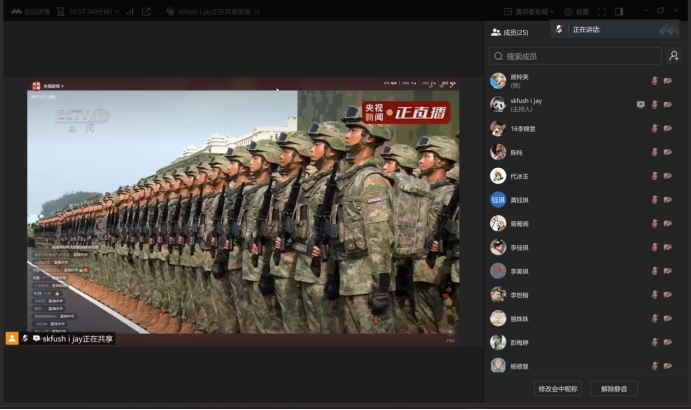 (各班級(jí)通過視頻會(huì)議形式觀看閱兵 財(cái)管2302班提供)