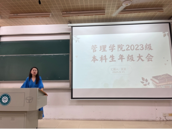 9月11日下午,管理學院2023級本科生年級大會于15號教學樓200室順利召開。本次大會由2023級輔導員王衛主講,全體2023級本科生462人參加會議。