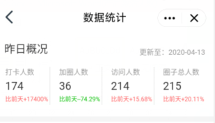 經過班委們的大力宣傳,活動第一天運動打卡圈子成員就達到214人,占總人數的79.6%;第一天成功打卡人數為174人,占參與總人數的81.3%。姚老師也積極參與打卡,鼓勵同學們積極參與,堅持鍛煉。